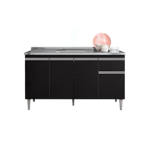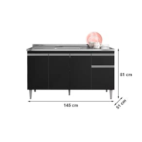 Balcão de Pia Tatiane 150cm Preto AJL Móveis