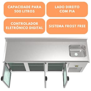 Balcão De Serviço Com Pia Inox 2,00m Refrigerador KBSP-200DP Kofisa - 220V