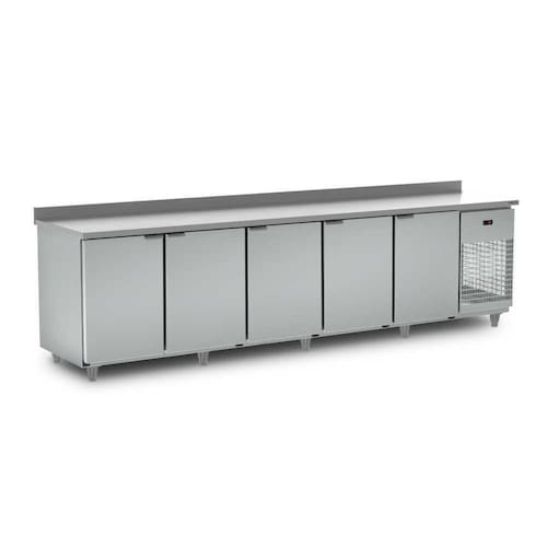 - Temperatura resfriados: 0C a 5C; - Refrigeração: ar forçado; - Controlador digital de temperatura; - Gabinete interno em aço galvanizado; - Gabinete externo (frente e laterais) em aço inox 430 brilhoso. Base e costas em aço galvanizado; - Tampo liso superior com espelho traseiro e borda quebra d'água; - Isolamento térmico em poliuretano injetado; - Sistema de armazenamento com grades tipo aramado com regulagem de altura por sistema de encaixe, cremalheiras e suportes em alumínio, numeração para facilitar o ajuste de altura; - Pés com regulagem de altura.