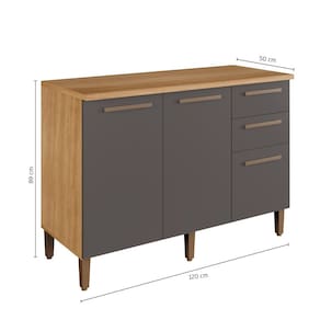 Amplo espaço interno o Balcão Diamante foi projetado para deixar sua cozinha do seu jeito. Gavetas com corrediça telescópicas, 4 portas com prateleiras internas, ele será a opção perfeita na sua cozinha.\nEspecificações do produto Montado: Altura: 89 Cm Largura: 120Cm Profundidade: 50 Cm Peso: 44Kg\nDetalhes do Produto: Garantia: 3 meses Material da estrutura: MDF Tampo de MDF 25MM Prateleira: 01 Pés reguláveis Corrediças telescópicas Tampo 25mm\nObservações: Não oferecemos serviço de montagem, mas todos os produtos possuem manual de montagem com o passo a passo. Recomendamos contratar um profissional de montagem. Pode existir alguma diferença de tonalidade entre a foto e o produto, devido ao tratamento de imagens e à calibração de cores do monitor.