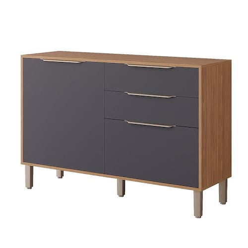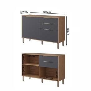 Material da estrutura: Tampos e laterais em MDF 15mm; Prateleira e laterais de gavetas em MDF 12mm;