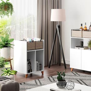 Balcão Drink Para Sala De Estar Com Cestos Be Mobiliário Branco Tx