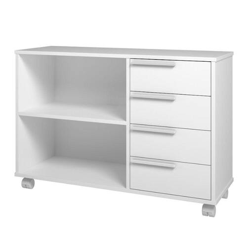 Conteúdo da Embalagem: 01 Balcão em MDP com 1 Prateleira 4 Gavetas e 4 Pés com Rodízio BRV Móveis