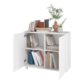 Balcão Em Mdp Com 2 Portas 2 Prateleiras E 4 Pés Com Rodízios Brv Móveis Branco Com design contemporaneo e aparencia unica, o Balcao BMU 114 e ideal para a sua sala de estar e apto a compor diferentes estilos de ambiente, agregando ainda mais a harmonia e a organizacao de sua decoracao. Possui 2 portas e 2 prateleiras para melhor organizar seus objetos importantes.