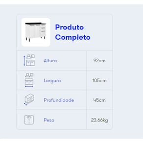Dimensões: Altura: 92 cm Largura: 105 cm Profundidade: 45 cm Peso: 22,60 Kg