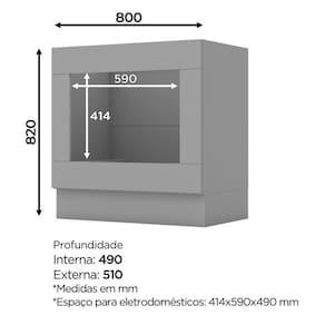 Balcao Forno Embutir Tampo Cooktop 80 Cm Americana Cinza Calcare Henn Cinza Calcare