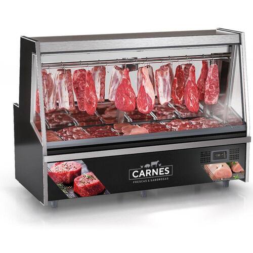 Balcão Frigorífico Premium Turino com Depósito GATP200ADAI Gelopar. Conservação e exposição de carnes não congeladas. Ideal para supermercado, açougues e similares. Temperatura: 0º a +7ºC. Refrigeração estática com evaporador aletado na parte superior e serpentina na base. Controle de temperatura: controlador eletrônico. Degelo manual. Permite montagem com prateleira aramada (2 níveis), tendal ou ambos. Iluminação: LEDs (interna), com interruptor. Tendal: Duplo em alumínio com ganchos. Bandejas em AI 430 acompanham o produto. Grades na base. Vidro frontal duplo temperado, baixo emissivo com aquecimento. Revestimento Externo: Laterais em aço injetado com pacote de vidro duplo temperado baixo emissivo, parte externa em pré-pintado em inox, parte interna aço inox espelhado. Revestimento interno em aço Inox 430. Vidros sujeitos a condensação da umidade do ar. Capacidade tendal: 50kg/metro por tendal. Capacidade base/ depósito: 50kg/metro. Capacidade das prateleiras (opcionais): 15kg/metro por prateleira. ATENÇÃO: Prateleiras não acompanham o produto. QUANTIDADE DE BANDEJAS: 7. DIMENSÕES BANDEJAS: 62,9x24x29cm. CAPACIDADE: 1019L. CAPACIDADE DO DEPÓSITO: 265L. TEMPERATURA: 0 a +7°C. CONSUMO: 11,60 kWh/dia. PESO: 188 kg. DIMENSÕES EXTERNAS (FxAxP): 200x146,2x96,5cm. Equipamento certificado conforme Portaria Inmetro nº 371/2009. Balcão Frigorífico Premium Turino com Depósito GATP200ADAI Gelopar é na Atau.
