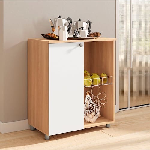 Balcão Fruteira Multiuso Âmbar 1 Porta 1 Cesta Freijó e Branco