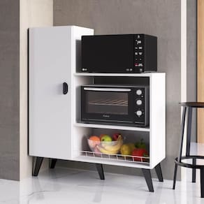 Balcão Fruteira Multiuso com Porta Branco Suporte para Forno