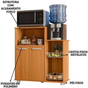 O Balcão Fruteira 2 portas é um produto compacto para seu ambiente, traz soluções para pequenos espaços pois possui amplo nicho organizador A.28cm x L.53cm x P.39cm , 2 portas de bater e prateleira interna para acomodar utensílios, 2 cestos fixos de metal para acomodar frutas e verduras de até 3kg, sua bancada pode ser utilizada para acomodar micro-ondas, filtro de água e outros utensílios domésticos, puxadores em polímero, dobradiças reforçadas de 26mm, pés PVC 5cm fixos para melhor sustentação do produto, em MDP 15mm com acabamento em pintura UV. Funcionalidade que combina com os mais variados ambientes. Este móvel chegará em sua casa separado em 1 volume.