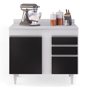 Pensamos em cada detalhe na hora de compor a nossa cozinha e sempre precisamos de um espaço a mais para a organização dos utensílios, pensando nisso o Balcão Gabinete com Tampo 2 Portas Luziania Preto/Branco da Lumil vem para compor a sua cozinha facilitando assim na hora de cozinhar!