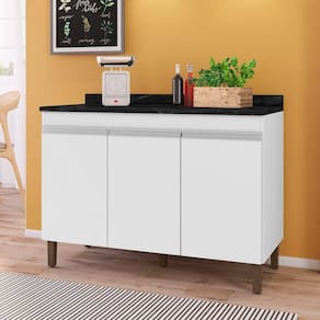 O Balcão com Tampo 119cm Karen 3 Portas, possui estrutura de ótima qualidade em MDP, com acabamento em pintura UV. Conta com dobradiças metálicas nas portas, pés com regulagem de altura, 01 prateleira interna para maior organização do ambiente, tampo de madeira e design moderno que torna sua cozinha muito mais bonita.