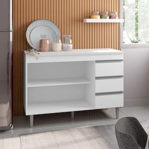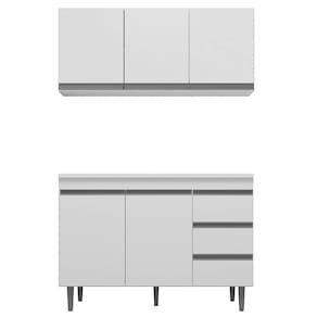 Renove sua cozinha com quem entende. O Balcão Gabinete Andréia com Tampo 120cm 2 Portas e Armário Aéreo 3 Portas da AJL é a opção certa para você que procura qualidade e beleza em um só produto. Com este conjunto seu ambiente ficará completo e elegante do jeitinho que você sempre sonhou. Produzido em MDP, o balcão e o armário possui acabamento em UV, que garante beleza e muito mais durabilidade ao produto. O Balcão Andréia conta com 2 portas convencionais, 3 gavetas com corrediças metálicas e puxadores embutidos, já o Armário Aéreo possui 3 portas e amplo espaço interno para acomodar utensílios de cozinha, não é demais? Sua cozinha merece o melhor! Qualidade e tradição que só a AJL tem. Compre já!