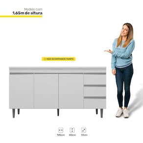 Renove sua cozinha com quem entende. O Balcão Andréia da AJL é a opção certa para você que procura qualidade e beleza em um só produto. Com este gabinete seu ambiente ficará completo e elegante do jeitinho que você sempre sonhou. Produzido em MDP, o balcão possui acabamento em UV, que garante beleza e muito mais durabilidade ao produto, além de 3 portas convencionais, 3 gavetas com corrediças metálicas e puxadores embutidos, não é demais? Sua cozinha merece o melhor! Qualidade e tradição que só a AJL tem. Compre já!