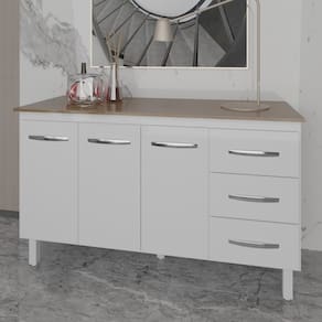 Balcão Gabinete Armário Cozinha Carine Branco com Tampo Tampão 140 cm Mobília Decor Savana
