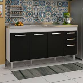 compacto e funcional, assim como o Balcão Gabinete Áustria com Pia Inox, da Lumil Móveis. Com 160cm esse balcão conta com 4 portas e 2 gavetas que são excelentes para organizar seus utensílios.