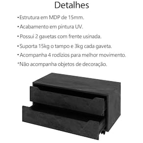 Balcão Gabinete Com 2 Gavetas e 4 Rodízios BN3643, ideal para inovar o seu banheiro com toque luxuoso e ao mesmo tempo refinado. Estrutura em MDP de 15mm, proporcionando maior durabilidade e resistência a peça, contando com acabamento em pintura UV. Composto por 2 gavetas com frente usinada e corrediças metálicas, acompanha 4 rodízios. Suportando 15kg o tampo e 3kg cada gaveta. Perfeito para deixar seu ambiente produtivo, proporcionando uma ambientação elegante e moderna. Este móvel chegará na sua casa separado em 1 volume.