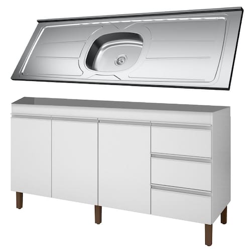 O Balcão Gabinete Com Pia 160cm 3 Portas Karen P14 Branco, da Mpozenato é uma ótima opção se você quer organizar e inovar a sua Cozinha.
