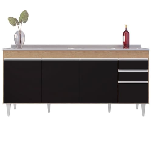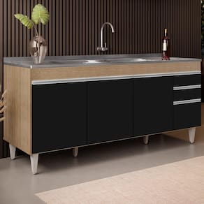 Fabricado em MDP com acabamento em pintura UV, oBalcão Gabinete Dallas Castanho/Preto é uma excelente opção para quem tem umacozinha com amplo espaço disponível para louça, panelas e demais acessórios utilizados neste ambiente que podem ser aproveitados da melhor maneira. Além da estrutura, também conta com pés reguláveis em PVC, 3 portas convencionais com puxador em alumínio embutido e 1 prateleira interna. Além é claro, de 2 gavetas e 1 porta basculante na lateral também com puxadores embutidos para facilitar o manuseio e com corrediças metálicas e espaço ótimo para guardar seus talheres e utensílios. Ah, e ainda é umbalcão com pia inox com características que permitem melhor desempenho ao escoar a água e possibilita a utilização de diferentes objetos sobre ela, tudo para te auxiliar!