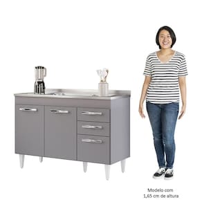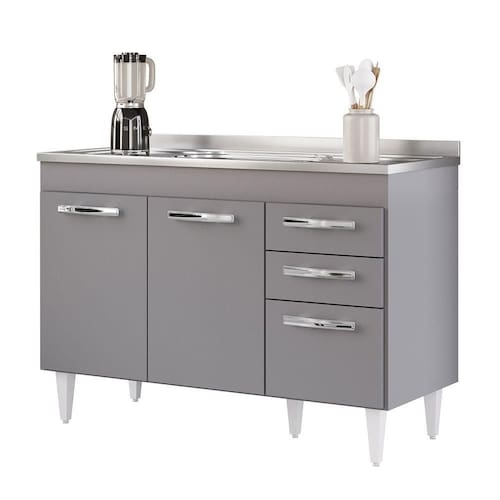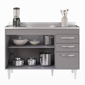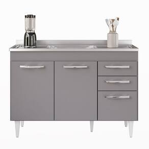Na hora de escolher o móvel que vai compor o ambiente é preciso estar atento, afinal com cozinhas cada vez menores, deve ser compacto e funcional assim como o Balcão Gabinete com Pia Inox 120cm 3 Portas 2 Gavetas Suécia Cinza, da Lumil. Esse Balcão com Pia conta com 3 portas e 2 gavetas conta com uma prateleira interna excelente para organizar seus potes ou mantimentos. Os puxadores são em PVC cromado, resistentes e fáceis de limpar, as dobradiças e corrediças são metálicas, garantido ainda mais qualidade. Além disso, a estrutura do Balcão Gabinete é feito em MDP com revestimento em BP, o que resulta em um acabamento resistente e duradouro. Ah, e os pés reguláveis de PVC facilitam o ajuste do móvel de acordo com o nivelamento do piso. Ele acompanha pia inox com cuba e válvula de 120cm, ideal para auxiliar no dia a dia aproveitando ainda mais seu ambiente! Gostou? Então agora é a hora de você agregar praticidade e funcionalidade a sua Cozinha. Adicione agora mesmo ao seu carrinho!