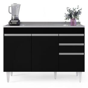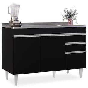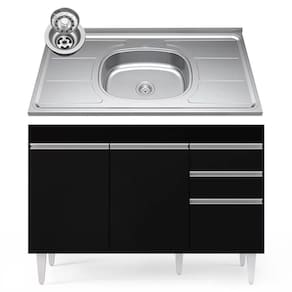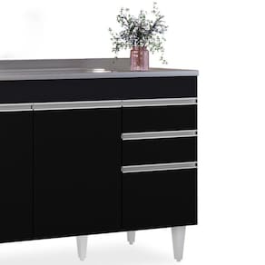 Procurando funcionalidade para sua cozinha? Vem conhecer o Balcão Gabinete com Pia Inox 120cm Michigan Preto, da Lumil!