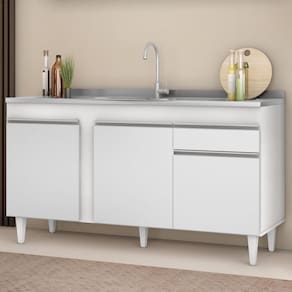 Manter a cozinha organizada e funcional é desafiador, por isso, apresentamos o Balcão Gabinete com Pia Inox 150cm 3 Portas 1 Gaveta Dakota Branco, da Lumil, para te ajudar nessa missão, confira!