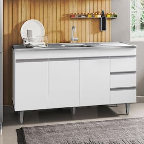 Material da Estrutura: Balcão: MDP / Pia: Aço Inox.