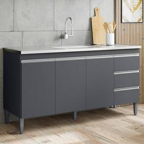 Está procurando um balcão compacto, prático e funcional para a sua cozinha? O Balcão Gabinete com Pia Inox 150cm Andréia 3 Portas Cinza, da AJL Móveis é perfeito!