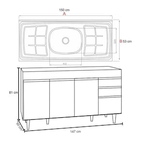 Quanto ao acabamento e estrutura também não há o que questionar, porque é fabricado em MDP 15mm com acabamento BP e os puxadores em alumínio modelo cava dão um toque de modernidade. Para completar, a pia inox agrega ainda mais utilidade, pois você terá um espaço ideal para o preparo das refeições, além da cuba central ser ampla e acompanhar a válvula com ralo que servirá de peneira para resíduos, evitando assim, eventuais entupimentos no encanamento da pia.