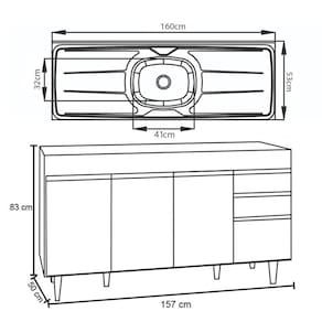 Altura: 83 cm | AssemblyRequired: Sim, sugerimos a contratação do nosso serviço de montagem (para os CEPs em que o serviço está dispon | Color: BrancoPreto | ColorFamily: BrancoPreto | ColorSimple: BrancoPreto | ColorSupplier: BrancoPreto | Cor: BrancoPreto | Gênero: Unisex | Largura: 160 cm | Manual: Sim | Marca: Lumil Móveis | Model: Arkansas | Origem: | OriginCountry: | OriginState: PR | Peso: 64 kg | Peso Suportado: 40 Kg | ProductContents: 1 Balcão, 1 Pia | ProductHeight: 83 | ProductInstructions: Produto para uso em ambiente interno, nao devendo ficar exposto ao sol, calor e umidade excessivos. | ProductLength: 53 | ProductWarranty: 90 dias após o do produto | ProductWeight: 64 Kg | ProductWidth: 160 | Profundidade: 53 cm | Requere montagem: Sim | SizeDescription: 83 x 160 x 53 cm | SupplierSimpleName: Balcão Gabinete com Pia Inox 160cm Arkansas BrancoPreto Lumil | Tipo de Garantia: Fabricante