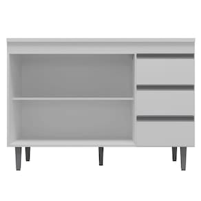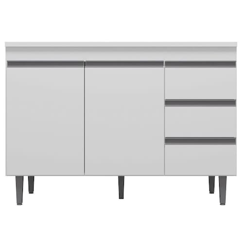 Renove sua cozinha com quem entende. O Balcão Andréia da AJL é a opção certa para você que procura qualidade e beleza em um só produto. Com este gabinete seu ambiente ficará completo e elegante do jeitinho que você sempre sonhou. Produzido em MDP, o balcão possui acabamento em UV, que garante beleza e muito mais durabilidade ao produto. Conta com 2 portas convencionais, 3 gavetas com corrediças metálicas e puxadores embutidos, não é demais? Sua cozinha merece o melhor! Qualidade e tradição que só a AJL tem. Compre já!