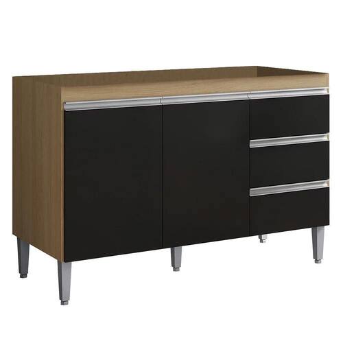 Balcão Gabinete Cozinha Andreia 120cm 2 Porta Ajl Móveis S/t Amêndoa Preto