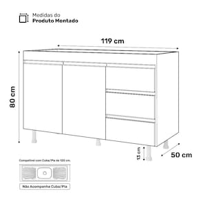 Não espere mais para elevar o nível da sua cozinha! Adquira agora o Balcão Gabinete Lux Para Pia de 120cm e surpreenda-se com a combinação de estilo e praticidade que só nós podemos oferecer!
