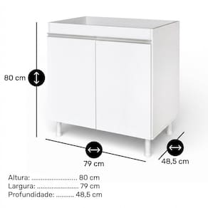 Com design versátil, pode ser utilizado como gabinete de cozinha, balcão para cooktop, cantinho do café, aparador compacto ou até mesmo em lavanderias, adaptando-se facilmente às diferentes necessidades do ambiente.