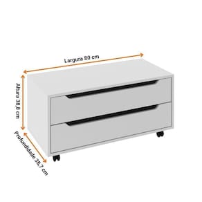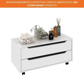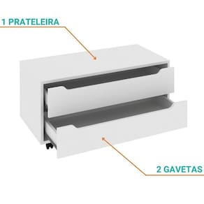 Itens Inclusos: Possui 2 gavetas com frente usinada, tampo e rodízio que permite movimento. Estrutura em MDP e acabamento em pintura UV. O produto não acompanha cuba.