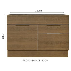 O Balcão de Pia de 120 cm da linha Stella da Madesa possui materiais de alto padrão como puxadores slim em alumínio, dobradiças metálicas com amortecimento e corrediças telescópicas de abertura total.