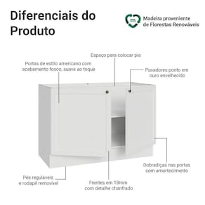 COR: Branco | Garantia: 3 meses contra de fabricação | Dimensões - Altura: 81 cm | Dimensões - Largura: 120 cm | Dimensões - Profundidade: 52 cm | Produto: Cozinha | Marca: Madesa | Peso do Produto: 31 kg | Material: MDP | RBN: Casa/Móveis/Móveis de Cozinha | Estado de Origem: RS | Material para Filtro: MDP | Conteúdo da embalagem: 1 Balcão para Pia | Instruções/Cuidados: Utilize um pano limpo, levemente umedecido e seque em seguida a superfície. Não usar produtos químicos ou abrasivos para a limpeza. Recomendamos polir seu móvel com lustra-móveis duas a três vezes por ano. | Quantidade de gavetas: 0 | Quantidade de portas: 2 | Produto precisa de Montagem?: Sim, sugerimos a contratação do nosso de montagem (para os CEPs em que o está disponível) ou de algum experiente de sua preferência | Inclui tampo: Não | Altura do Produto com Embalagem (cm): 69,3 | Largura Produto Com Embalagem (cm): 60,5 | Comprimento Produto Com Embalagem (cm): 125,5 | Peso Produto Com Embalagem (Kg): 31,42 | Dimensões do item P x L x A (item_depth_width_height): depth#value=52;depth#unit=centimeters;height#value=81;height#unit=centimeters;width#value=120;width#unit=centimeters | Nome do Simples no Fornecedor: Balcão Gabinete de Pia 120 cm (Sem Tampo) Branco Vik Madesa | Fabricante: Madesa | Tipo de móveis de cozinha: Balcão | Linha: Vik | Materiais do corpo: MDP | Materiais das portas: MDP | Quantidade de caixas de embalagem: 3 | Bullet Point 0: Dimensões: 81 cm altura x 120 cm largura x 52 cm profundidade | Bullet Point 1: Inspiração no estilo americano, frentes com acabamento chanfrado e textura fosca suave ao toque | Bullet Point 2: Puxadores ponto em ouro envelhecido e portas com fechamento suave | Bullet Point 3: A combinação perfeita entre design clássico e elementos modernos | É Frágil: Não | Quantidade de Itens: 1 | Certificação de teste externa: Sim | Modelo: G2412009VK | Precisa de baterias ou pilhas: Não | da peça: G2412009VK | Componetes Incluidos: Portas | Preço sugerido sem impostos: | Peso do Item: ;unit=kilograms | Descrição do Tamanho: 81 cm x 120 cm x 52 cm | Inclui manual de montagem: Sim Cor: Branco
