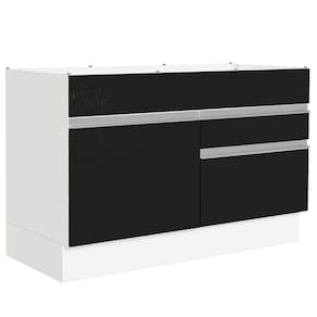 Este é o Balcão Gabinete de Pia de 120 cm com duas gavetas e uma porta da linha Glamy da Madesa. A profundidade é de 60 cm, pensada para se ter o máximo de aproveitamento do espaço interno.