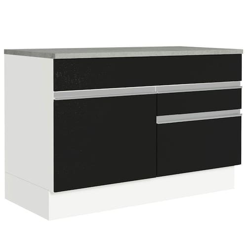 Este é o Balcão Gabinete de Pia de 120 cm com duas gavetas e uma porta da linha Glamy da Madesa. A profundidade é de 60 cm, pensada para se ter o máximo de aproveitamento do espaço interno.