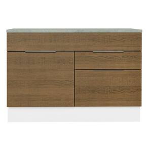 O Balcão de Pia de 120 cm da linha Stella da Madesa possui materiais de alto padrão como puxadores slim em alumínio, dobradiças metálicas com amortecimento e corrediças telescópicas de abertura total.