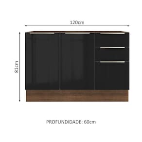 Além disso, possui três gavetas com corrediças telescópicas, sendo a última mais profunda. A ótima profundidade proporciona muito espaço para panelas, utensílios e louças.