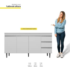 Que tal o Balcão Gabinete Andréia de Pia 150cm Sem Tampo 3 Portas?