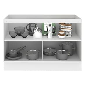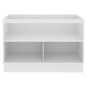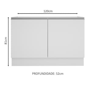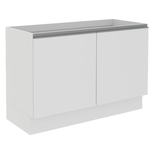 Possui duas portas e um interno com prateleira e duas divisórias. Assim fica muito mais fácil de organizar panelas, utensílios, louças e produtos de limpeza. O espaço para a colocação de tampo ou pia é de 120 cm de largura por 52 cm de profundidade.