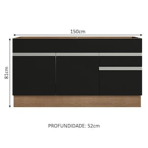 - Um (1) Balcão de 150 cm de largura com duas (2) portas e duas (2) gavetas (Não acompanha tampo).