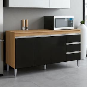 Balcão Gabinete De Pia Para Cozinha Sem Tampo 150cm 3 Portas Andréia Amêndoa/preto- Mabe Magazine