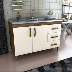 Balcão Gabinete de Pia Karina - 118 x 80 x 51cm com 3 Gavetas e 2 Portas