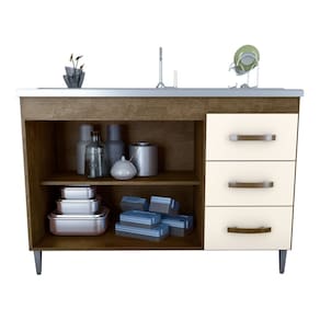 O Balcão Gabinete de Pia Karina é a solução perfeita para organizar sua cozinha com praticidade e estilo. Com 1,18m de largura, 80cm de altura e 51cm de profundidade, ele oferece 3 gavetas e 2 portas para armazenamento eficiente de utensílios e produtos de cozinha. Seu design moderno e acabamento de alta qualidade garantem resistência e fácil manutenção. Não acompanha tampo, permitindo personalização conforme sua preferência. Ideal para quem busca funcionalidade e elegância no ambiente. Suporta Granito: Sim Acabamento da Prateleira: Pintura UV Escala de Brilho da Prateleira: Fosco Acabamento da Gaveta: Pintura UV Material do Puxador da Gaveta: PVC Acabamento da Porta: Pintura UV Escala de Brilho da Porta: Fosco Material do Puxador da Porta: PVC Produto Montado: Sim Acabamento: Pintura UV Acompanha Tampo: Não Altura dos Pés: 17 cm Altura Máxima dos Pés: 17.0000 Ambiente Principal: Cozinha Balcão Acompanha Pia: Não Balcão Suporta Pia: Sim Cesto para Frutas: Não codigo_ean: 7900288218254 Complexidade da Montagem: Baixa: pode ser montado por uma pessoa sozinha Cor: Canela/ Off White Cor do Produto: Canela/ Off White Cor Interna: Canela Escala de Brilho: Fosco Gaveta com Chave: Não Informações Complementares: Distribuidos Itens Inclusos: 1 Balcão, Kit Ferragens e Manual de Montagem Linha ou Coleção: Karina Manual de Montagem e Instalação: https://product-hub-prd.madeiramadeira.com.br/979220/documents/34fa95d3-7c51-481b-9d72-40a281b89f522706448615317401472315695.pdf Marca: Móveis Bosi Material da Corrediça: Metálica Material da Dobradiça/Corrediça da Porta: Metálica Material da Gaveta: MDP Material da Porta: MDP Material da Prateleira: MDP Material dos Pés: Plástico modular: Não Necessita Montagem: Sim O Balcão Acompanha Pia: Não Origem do Produto: Nacional Pés Reguláveis: Sim Peso: 31 kg Peso Máximo por Gaveta: 5 kg Peso Máximo por Prateleira: 5 kg Possui Pés: 05 Possui Portas: Sim Possui recorte para Cooktop: Não Recomendações de Uso, Manutenção e Limpeza: Limpar com pano seco Sapatas Niveladoras: Não Sistema de Montagem: Manual Suporta Até (kg): 40 kg Tipo de Corrediça da Gaveta: Simples Tipo de Dobradiça/Corrediça da Porta: Simples Tipo de Porta: Bater Tipo de Puxador da Gaveta: Externo Tipo de Puxador da Porta: Externo