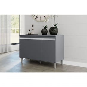 Características Técnicas:- Desenvolvido 100% em MDP- Acabamento em pintura U.V na cor Preto- Possui 3 Portas- Dobradiças em Aço- Puxadores embutidos- Pés em PVC- Lindo design