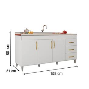 Balcão Gabinete de Pia Luana - 158 x 80 x 51cm para Cozinha