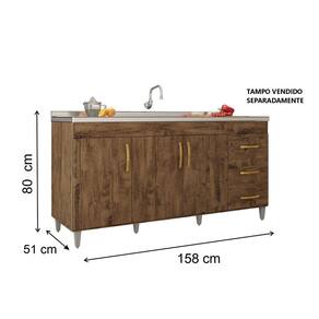 Balcão Gabinete de Pia Luana - 158 x 80 x 51cm para Cozinha